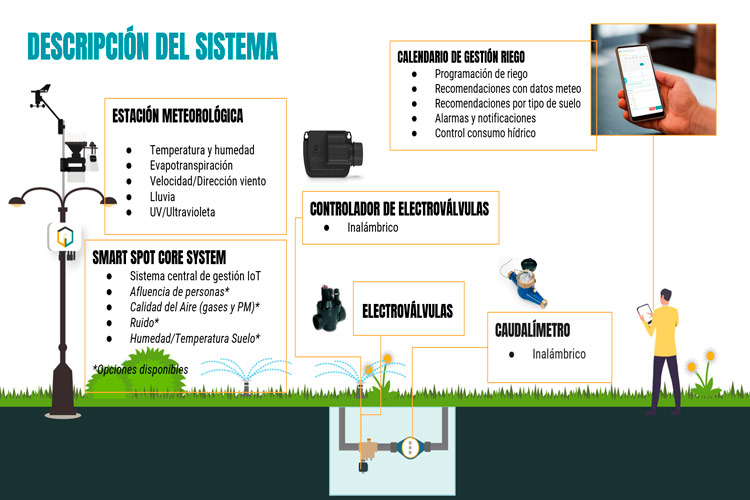 To this end, a digital platform, known as 'Smart Green', will be installed, as well as a series of sensors in the irrigation infrastructures, which will allow the system to become intelligent and improve its efficiency. To do this, it takes into account the characterization data of the space (vegetation typology, soil characteristics, irrigation infrastructure, etc.), of the information coming from own meteorological stations and from other networks such as the case of the AEMET (State Meteorological Agency), as well as real-time information on the humidity status of the park, allowing that with all this an algorithm can be created to calculate the optimal water balance of each of the areas of this green space. With this information, the system determines the most efficient irrigation schedule, providing the equipment with only the water it requires at all times.