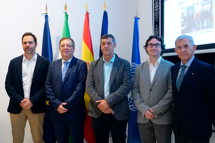 En la firma del convenio de colaboración, que permitirá el inicio de los trabajos, han participado el gerente de Hidralia en la Costa del Sol, Fulgencio Díaz Madrid, el vicerrector de Investigación de la Universidad de Málaga, Teodomiro López, y el presidente provincial de Cruz Roja Española Luís Utrilla Navarro.